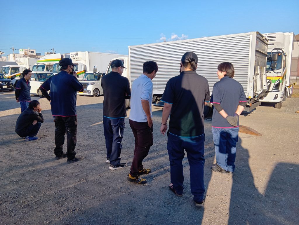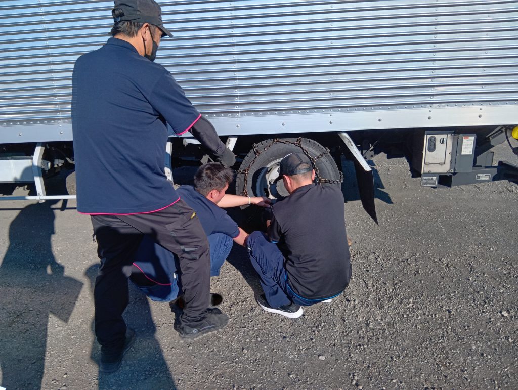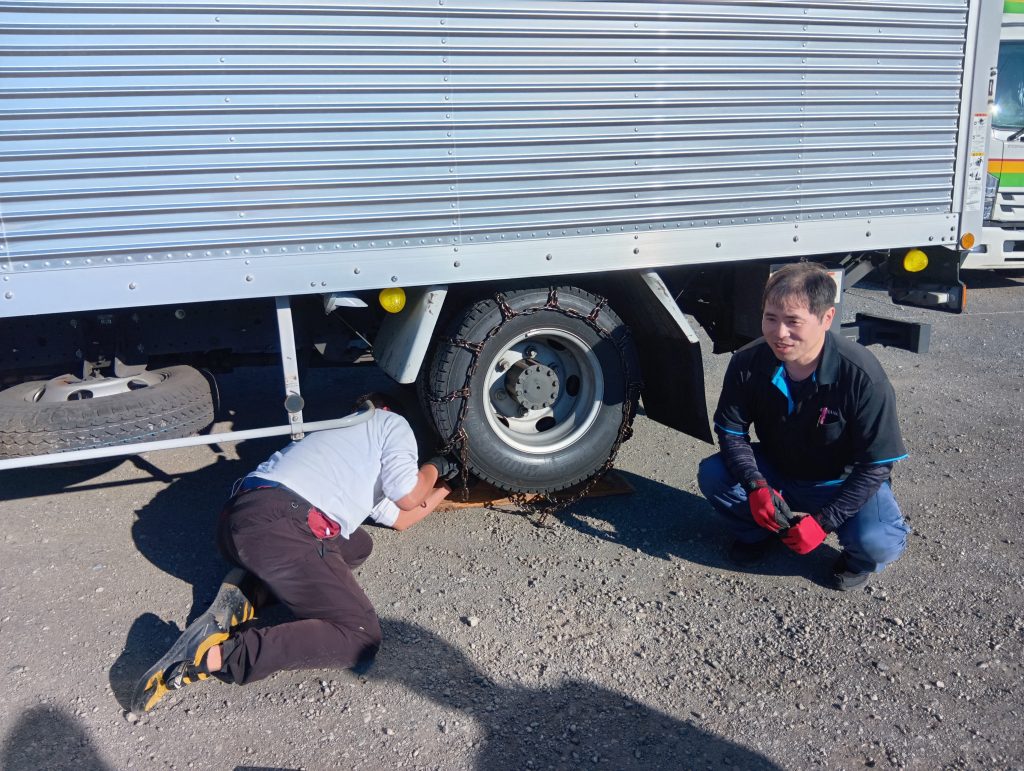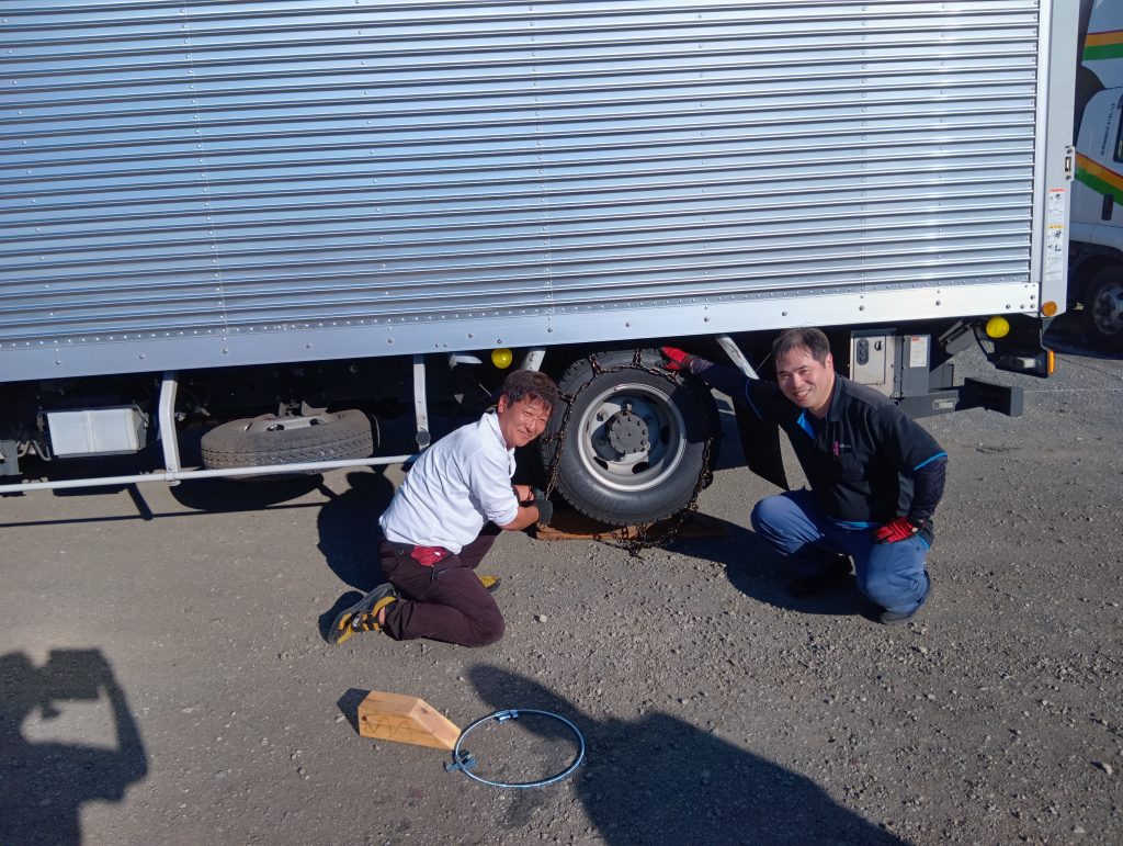 11月26日、冬に向けてタイヤチェーンの着脱講習を車庫で行いました。